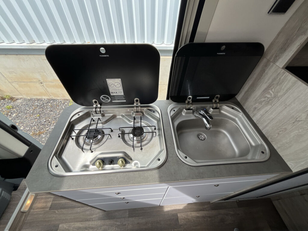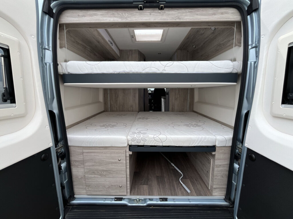 Obytná vestavba pro 4 osoby se silným motorem 165 PS skladem. Registrace květen 2025, nájezd 23 120 km.
