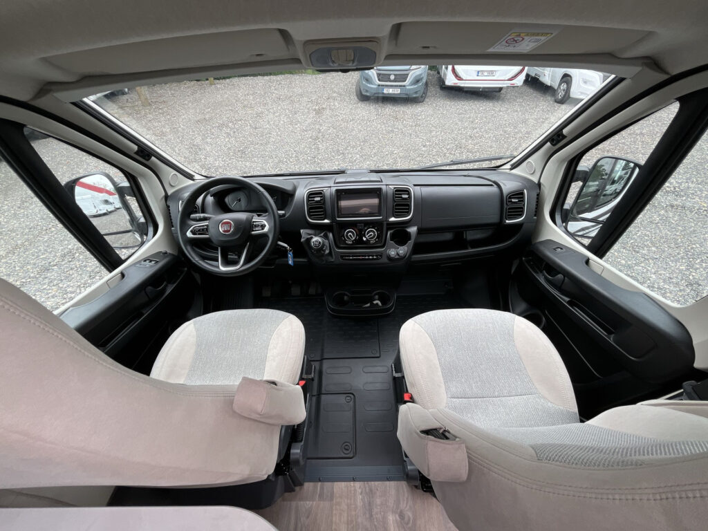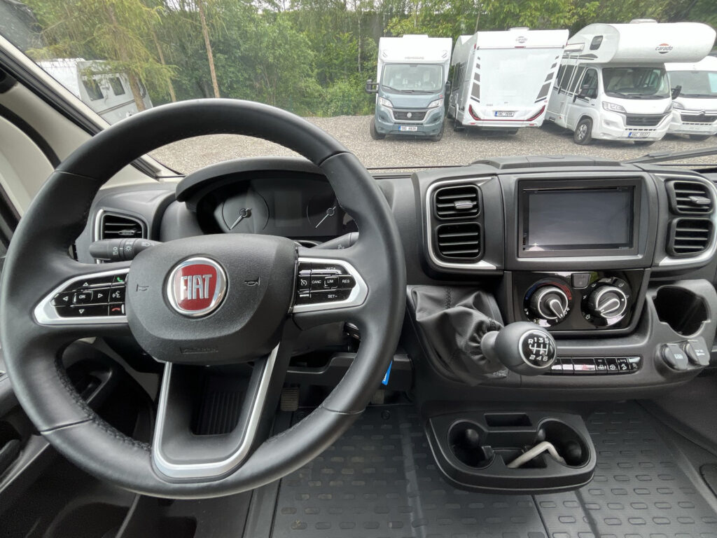 Výbava skladového vozidla: motor 140 PS, 3500 kg, trakce plus Fiat, multifunkční volant, 16" alu kola, rezervní kolo, černé lemování světlometů, parkovací senzory, lakovaný přední nárazník, asistent mrtvého úhlu, 90 l nádrž nafty, izolace a…