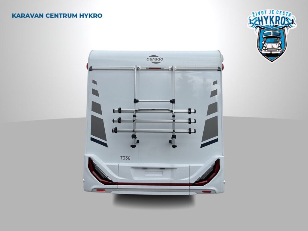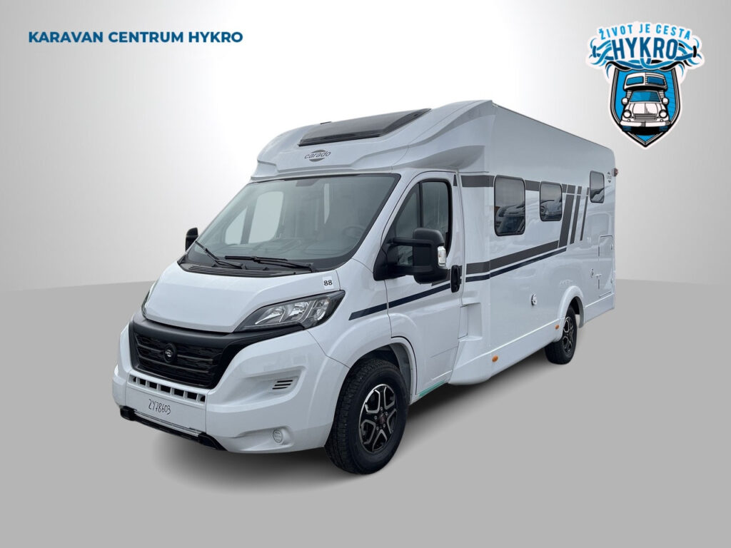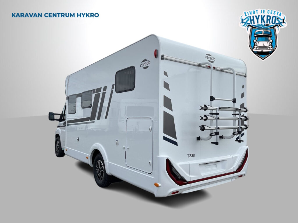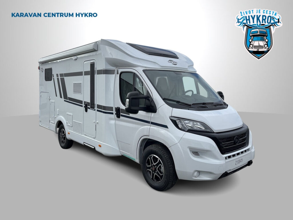 Rodinný polointegrovaný obytný vůz Carado T338 na podvozku Fiat Ducato pro 4 osoby na jízdu i na spaní v oblíbeném půdorysu s automatickou převodovkou skladem.