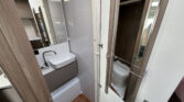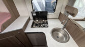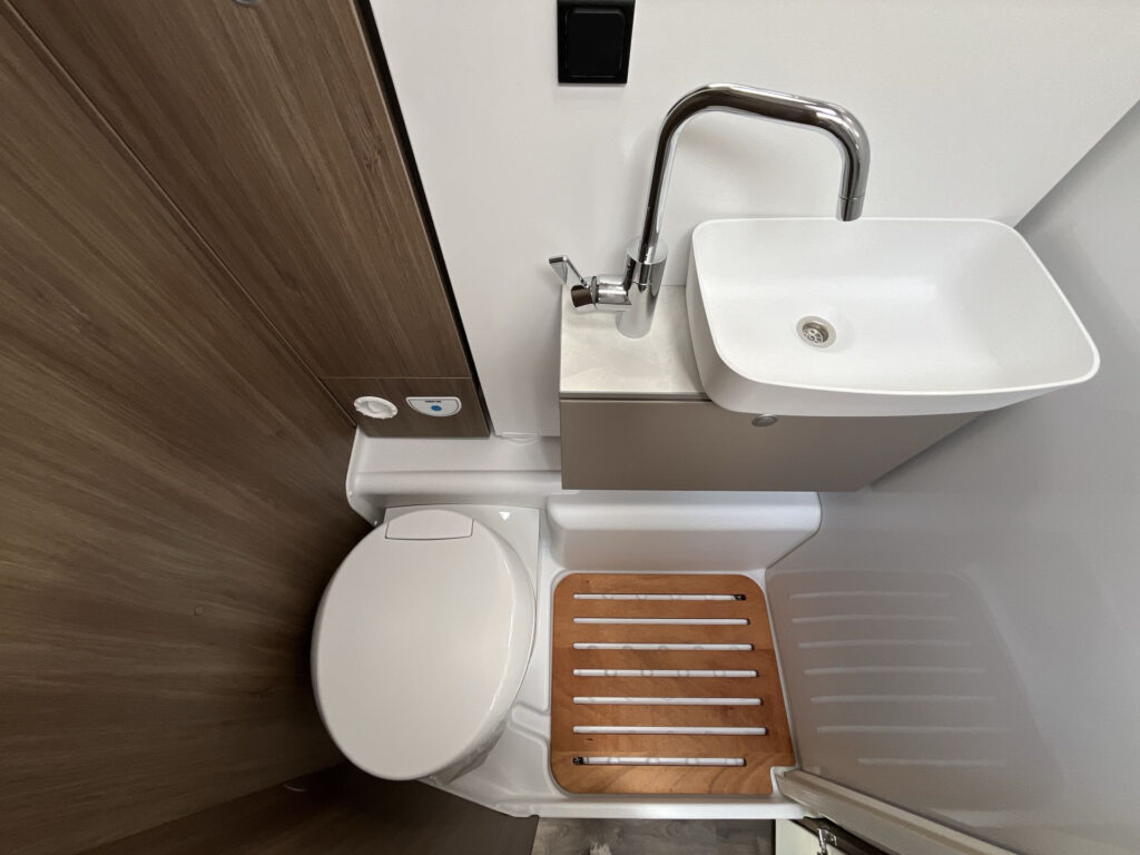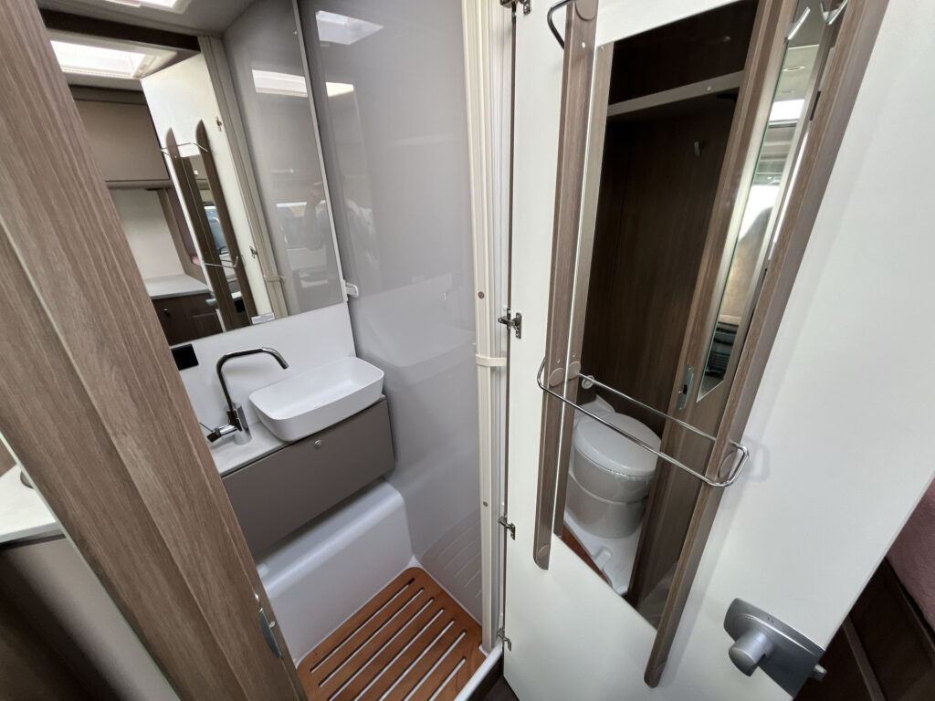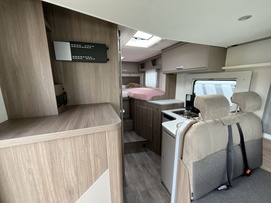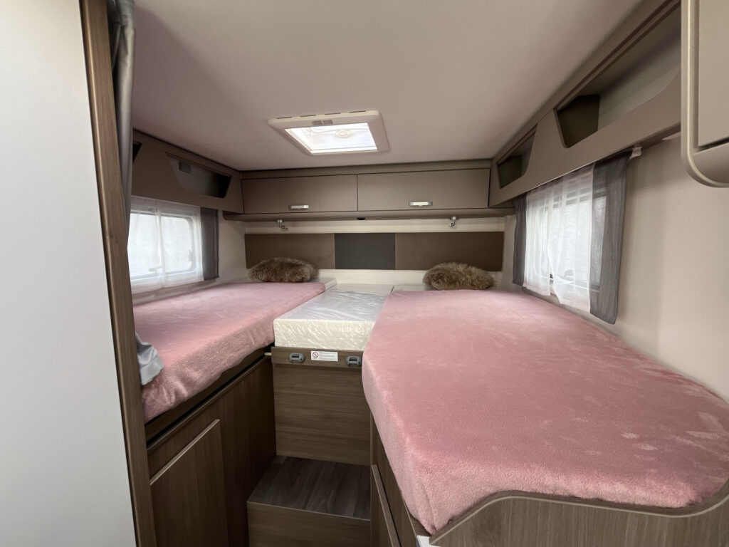 Standardní výbava: Přední otočná sedadla Captain Chair, airbag řidiče a spolujezdce, motorová klimatizace manuální, tónovaná a elektricky ovládaná okna v kabině řidiče, centrální zamykání dveří v kabině řidiče, palubní počítač s ukazatelem vnější teploty, DAB anténa ve zpětném zrcátku, držák na telefon / tablet vč. USB zásuvky, dojezdová sada pro pneu Fix & Go Kit, příprava rádia vč. 4 reproduktorů, přední nárazník v barvě vozidla, 7 let záruka na těsnost nástavby, střecha a zadní stěna odolná proti krupobití, polohovatelná dvojitá boční okna s roletou a sítí proti hmyzu, prostorná garáž se zatížením 150 kg, elektrický vstupní schůdek, LED osvětlení interiéru a exteriéru, výkonná baterie AGM 95 Ah pro obytnou část, kontrolní panel nástavby, vnitřní zásuvky 230V, vnější připojení pro 230V s jističem, USB zásuvka, centrální osvětlení u vstupních dveří, plynové topení Combi 6 s integrovaným 10 l bojlerem, kuchyňská deska s nerezovým dřezem a skleněným krytem, tříhořákový vařič s pojistkou hoření a se skleněným krytem, LED osvětlení nad kuchyňskou linkou, pákové mísící baterie v kuchyni i koupelně, nádrž čisté vody vč. bojleru 122 litrů, odpadní nádrž 92 litrů, WC s elektrickým splachováním, skříňka se zrcadlem, integrované LED osvětlení, střešní okno s ochrannou síťkou, ergonomicky tvarované sedáky, komfortní matrace s odnímatelnými potahy na všech lůžkách, laťový rošt na pevných lůžkách, Isofix pro 2 sedačky
