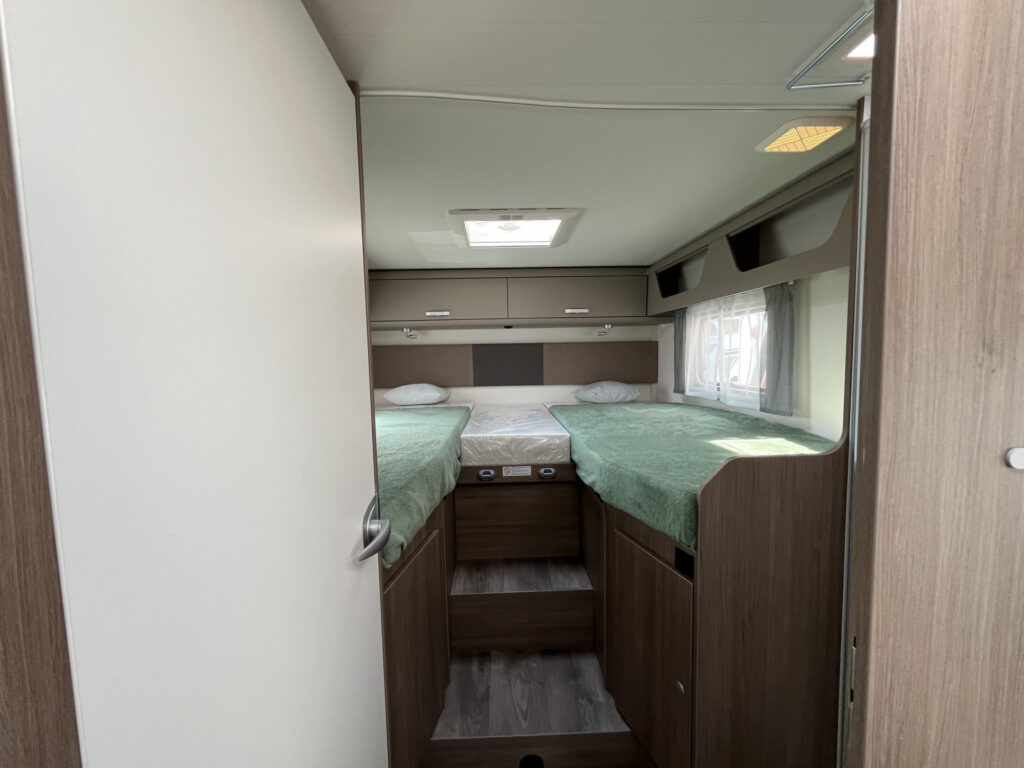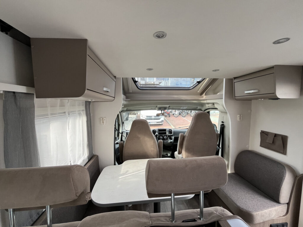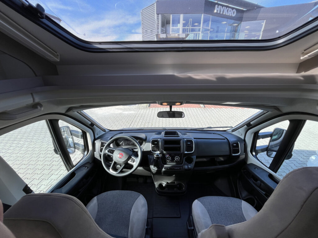 Standardní výbava: Přední otočná sedadla Captain Chair, airbag řidiče a spolujezdce, motorová klimatizace manuální, tónovaná a elektricky ovládaná okna v kabině řidiče, centrální zamykání dveří v kabině řidiče, palubní počítač s ukazatelem vnější teploty, DAB anténa ve zpětném zrcátku, držák na telefon / tablet vč. USB zásuvky, dojezdová sada pro pneu Fix & Go Kit, příprava rádia vč. 4 reproduktorů, přední nárazník v barvě vozidla, 7 let záruka na těsnost nástavby, střecha a zadní stěna odolná proti krupobití, polohovatelná dvojitá boční okna s roletou a sítí proti hmyzu, prostorná garáž se zatížením 150 kg, elektrický vstupní schůdek, LED osvětlení interiéru a exteriéru, výkonná baterie AGM 95 Ah pro obytnou část, kontrolní panel nástavby, vnitřní zásuvky 230V, vnější připojení pro 230V s jističem, USB zásuvka, centrální osvětlení u vstupních dveří, plynové topení Combi 6 s integrovaným 10 l bojlerem, kuchyňská deska s nerezovým dřezem a skleněným krytem, tříhořákový vařič s pojistkou hoření a se skleněným krytem, LED osvětlení nad kuchyňskou linkou, pákové mísící baterie v kuchyni i koupelně, nádrž čisté vody vč. bojleru 122 litrů, odpadní nádrž 92 litrů, WC s elektrickým splachováním, skříňka se zrcadlem, integrované LED osvětlení, střešní okno s ochrannou síťkou, ergonomicky tvarované sedáky, komfortní matrace s odnímatelnými potahy na všech lůžkách, laťový rošt na pevných lůžkách, Isofix pro 2 sedačky.
