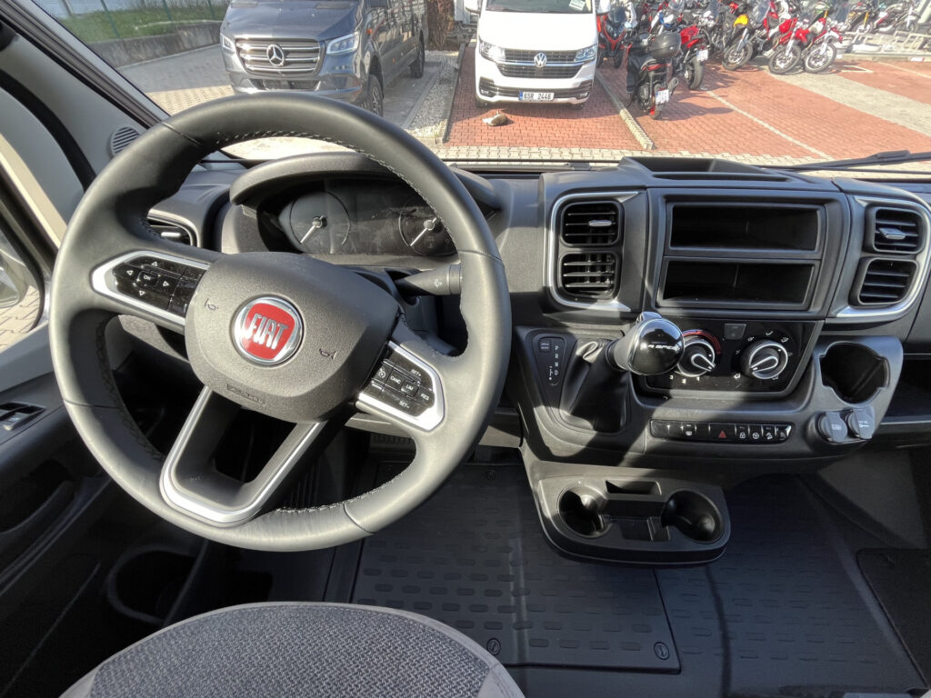 Standardní výbava: Přední otočná sedadla Captain Chair, airbag řidiče a spolujezdce, motorová klimatizace manuální, tónovaná a elektricky ovládaná okna v kabině řidiče, centrální zamykání dveří v kabině řidiče, palubní počítač s ukazatelem vnější teploty, DAB anténa ve zpětném zrcátku, držák na telefon / tablet vč. USB zásuvky, dojezdová sada pro pneu Fix & Go Kit, příprava rádia vč. 4 reproduktorů, přední nárazník v barvě vozidla, 7…