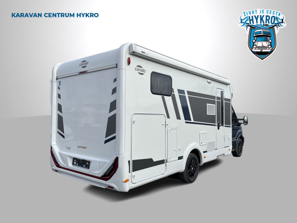 Nejoblíbenější varianta polointegrovaného vozu Carado se samostatnou sprchou a WC až pro 5 osob na spaní v exkluzivním provedení EDITION24 skladem.
