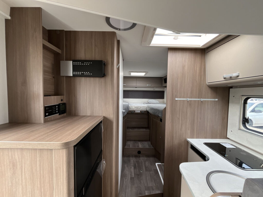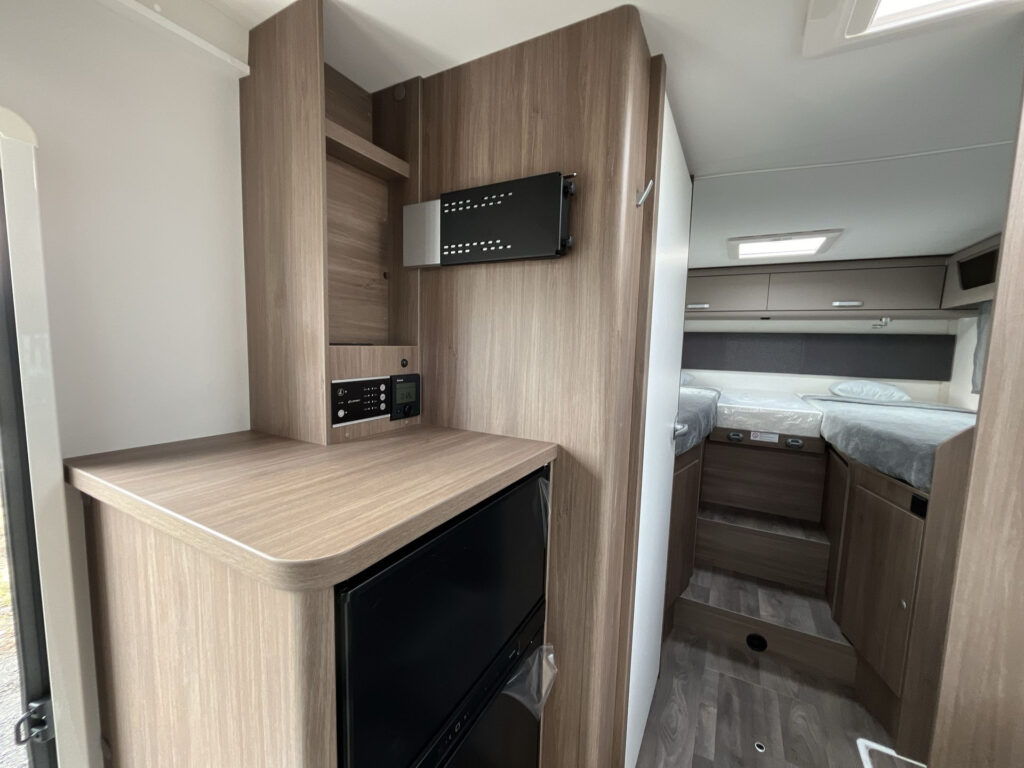 Příplatková výbava v ceně vozu: výsuvný rošt mezi zadními lůžky, přední stahovací dvojlůžko, dřevěný rošt ve sprše, 12V příprava TV vč. držáku, příprava pro solární panel, topení Truma Combi 6E