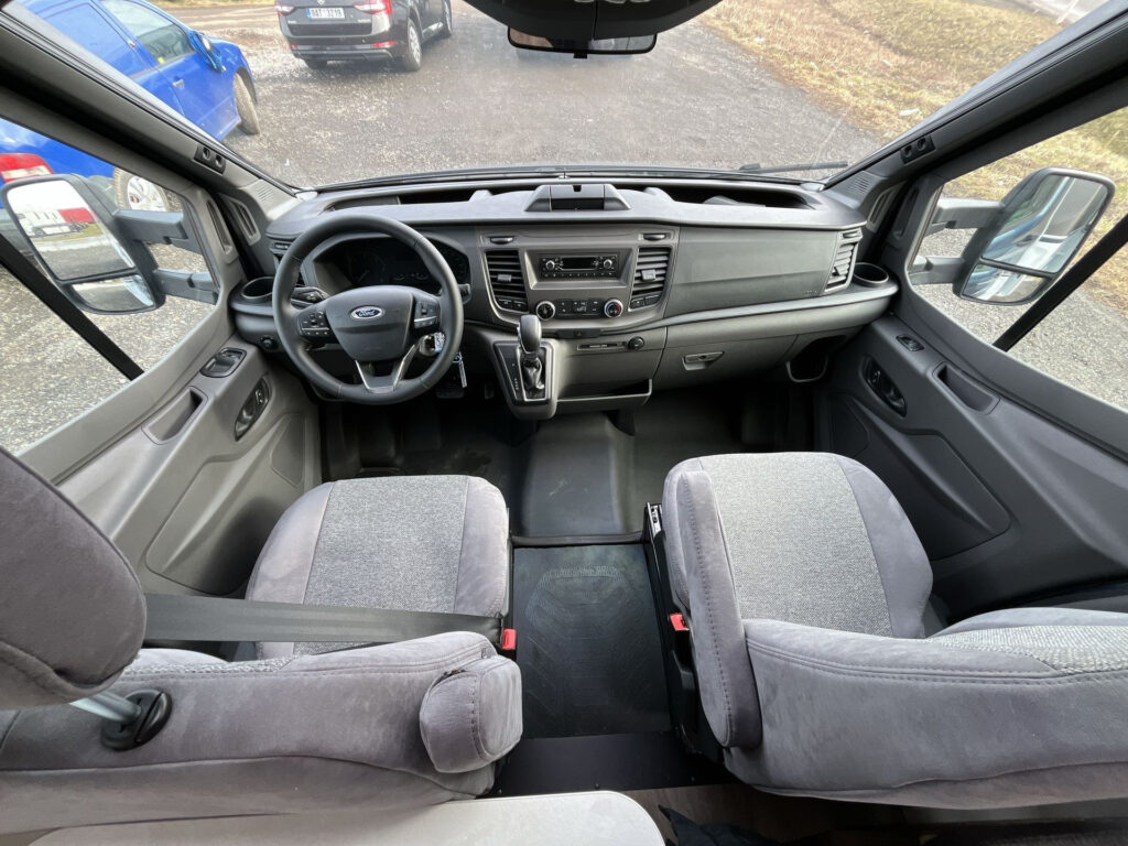CHASSIS PAKET Ford: automatická klimatizace kabiny, uzavíratelná přihrádka nad kabinou řidiče, lakovaný přední nárazník, denní světla se světlomety do zatáček, mlhovky, vyhřívaná zpětná zrcátka