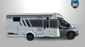 Standardní výbava: Přední otočná sedadla Captain Chair, airbag řidiče a spolujezdce, motorová klimatizace manuální, tónovaná a elektricky ovládaná okna v kabině řidiče, centrální zamykání dveří v kabině řidiče, palubní počítač s ukazatelem vnější teploty, DAB anténa ve zpětném zrcátku, držák na telefon / tablet vč. USB zásuvky, dojezdová sada pro pneu Fix & Go Kit, příprava rádia vč. 4 reproduktorů, přední nárazník v barvě vozidla, 7 let záruka na těsnost nástavby, střecha a zadní stěna odolná proti krupobití, polohovatelná dvojitá boční okna s roletou a sítí proti hmyzu, prostorná garáž se zatížením 150 kg, elektrický vstupní schůdek, LED osvětlení interiéru a exteriéru, výkonná baterie AGM 95 Ah pro obytnou část, kontrolní panel nástavby, vnitřní zásuvky 230V, vnější připojení pro 230V s jističem, USB zásuvka, centrální osvětlení u vstupních dveří, plynové topení Combi 6 s integrovaným 10 l bojlerem, kuchyňská deska s nerezovým dřezem a skleněným krytem, tříhořákový vařič s pojistkou hoření a se skleněným krytem, LED osvětlení nad kuchyňskou linkou, pákové mísící baterie v kuchyni i koupelně, nádrž čisté vody vč. bojleru 122 litrů, odpadní nádrž 92 litrů, WC s elektrickým splachováním, skříňka se zrcadlem, integrované LED osvětlení, střešní okno s ochrannou síťkou, ergonomicky tvarované sedáky, komfortní matrace s odnímatelnými potahy na všech lůžkách, laťový rošt na pevných lůžkách, Isofix pro 2 sedačky.