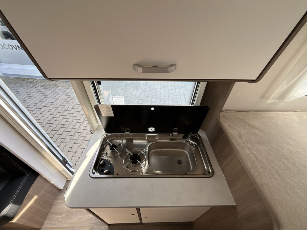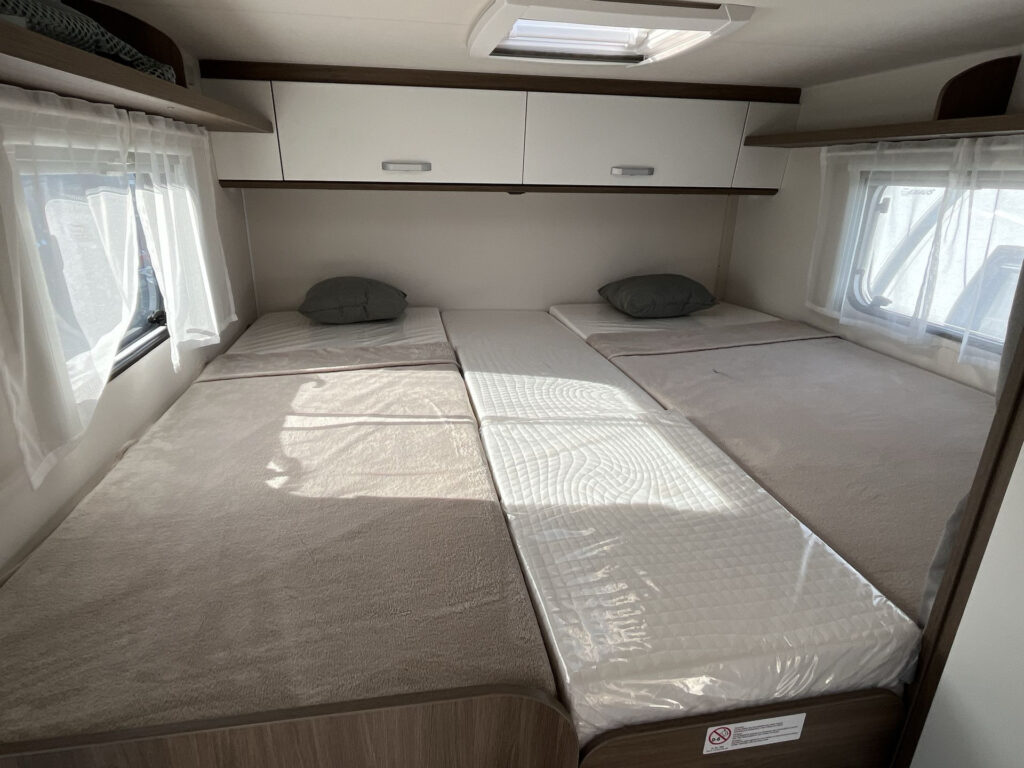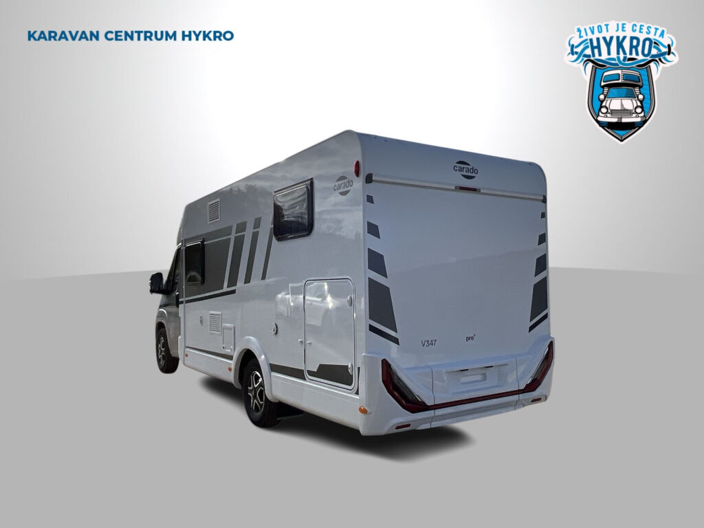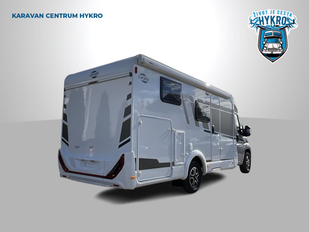 Novinka pro modelový rok 2026. Model V347 se zadními podélnými lůžky a předním sklápěcím lůžkem. Polointegrovaný vůz pro 3 osoby na spaní na podvozku Fiat Ducato.