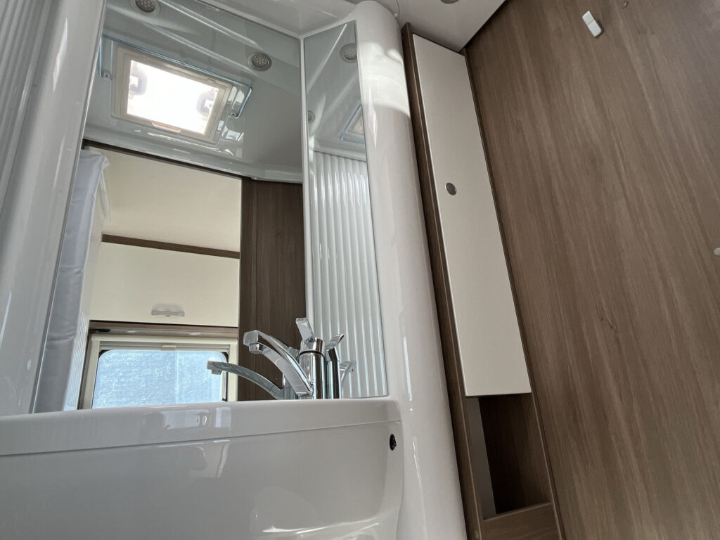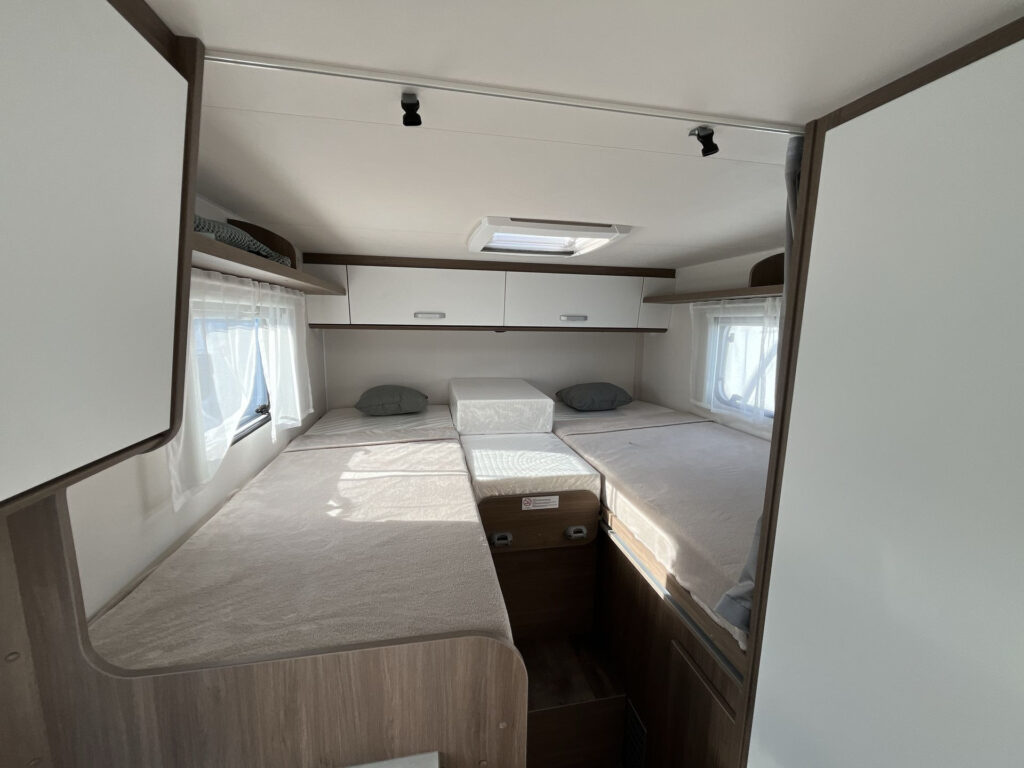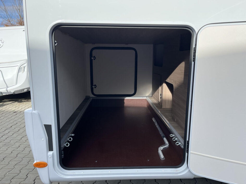 Příplatková výbava v ceně vozu: Fiat 3,5 t 140 HP, automatická převodovka, Euro 6E, 90 l palivová nádrž, výsuvný rošt mezi zadními lůžky, zvedací postel Clever v přední části, příprava pro couvací kameru, topení Truma Combi 6E, dřevěný rošt ve sprše, příprava pro couvací kameru