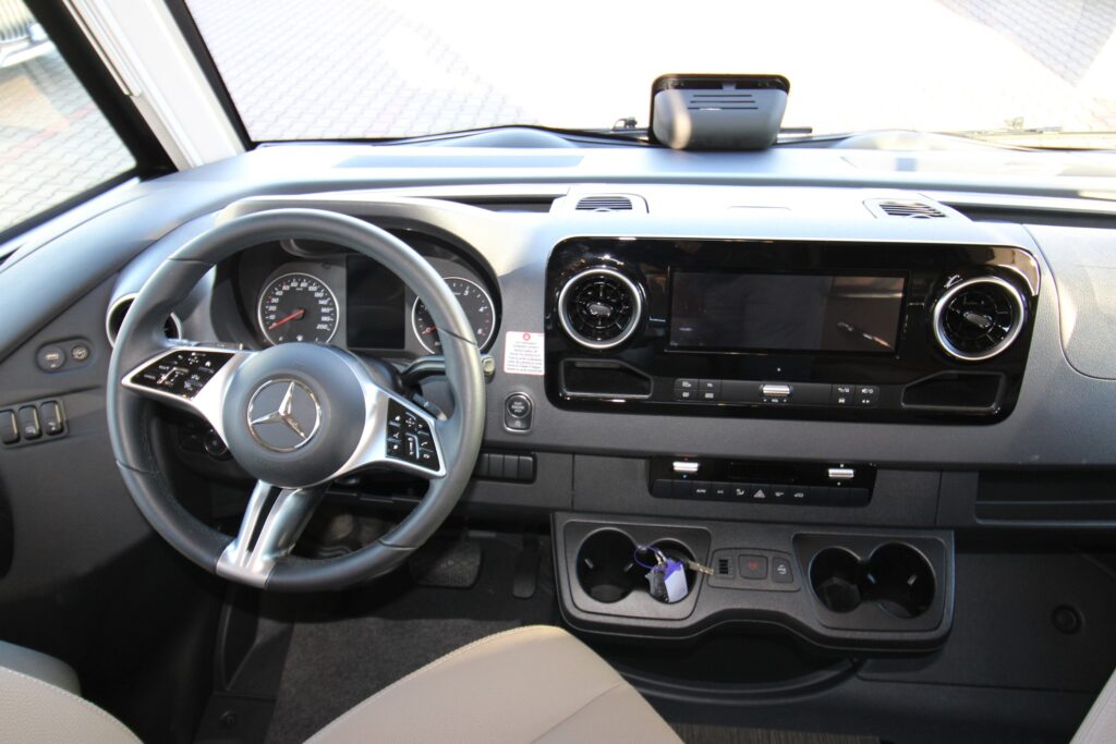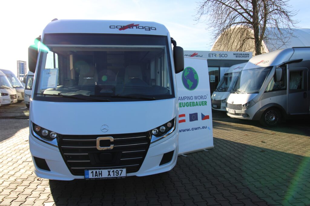 zánovní vůz, pouze 5356 km !!!, Původní cena 4.547.087 Kč včetně rozsáhlé příplatkové výbavy !!!, 1. majitel, podvozek Mercedes-Benz AL-KO, motor 2.0 l, 170 k, 9st. automatická převodovka, paket jízdních asistentů včetně adaptivního tempomatu, MB MBUX multimediální systém včetně navigace, parkovací kamera, kožený multifunkční volant, výškově nastavitelná sedadla řidiče a spolujezdce Aguti, centrální zamykání dveří řidiče a nástavby, paket přídavných zásuvek, dvojitá vyhřívaná podlaha s úložnými prostory, topení Truma 6, Truma…