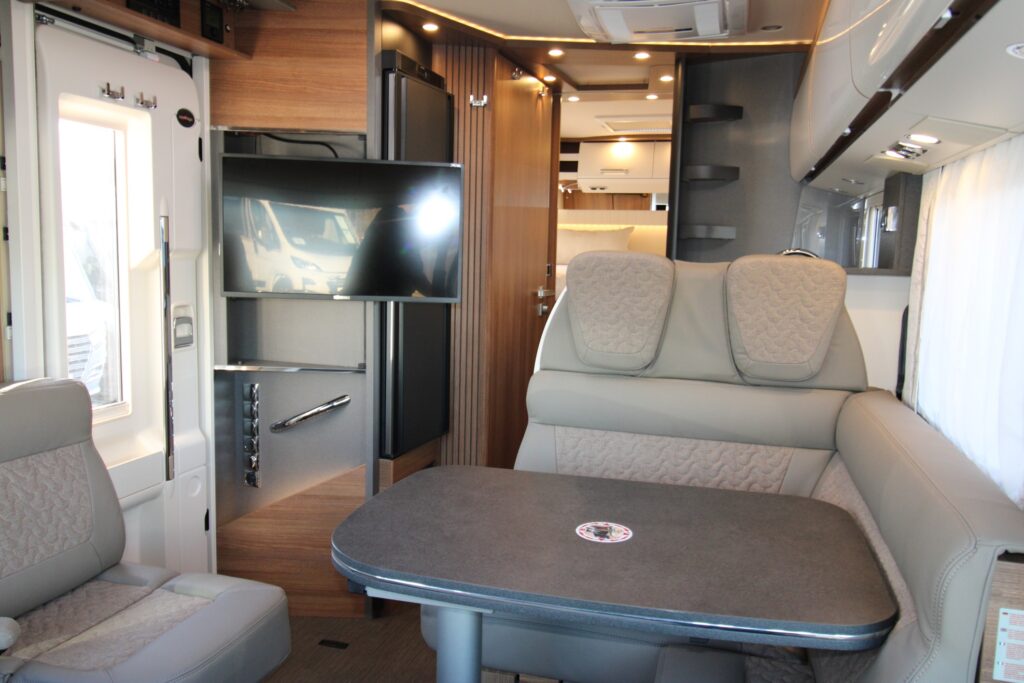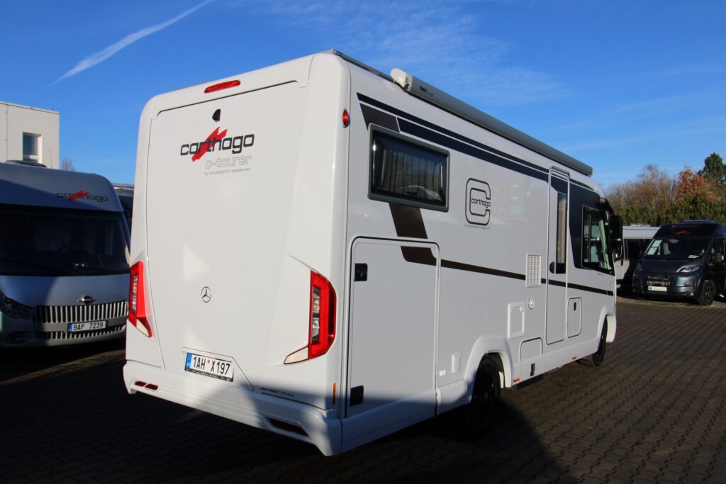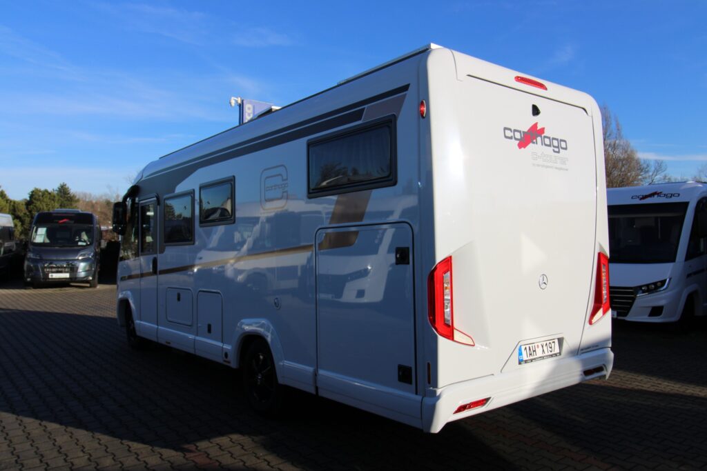 zánovní vůz, pouze 5356 km !!!, Původní cena 4.547.087 Kč včetně rozsáhlé příplatkové výbavy !!!, 1. majitel, podvozek Mercedes-Benz AL-KO, motor 2.0 l, 170 k, 9st. automatická převodovka, paket jízdních asistentů včetně adaptivního tempomatu, MB MBUX multimediální systém včetně navigace, parkovací kamera, kožený multifunkční volant, výškově nastavitelná sedadla řidiče a spolujezdce Aguti, centrální zamykání dveří řidiče a nástavby, paket přídavných zásuvek, dvojitá vyhřívaná podlaha s úložnými prostory, topení Truma 6, Truma Duocontrol, interiér World Nuovo, čalounění Davos, vozidlo bez přední spouštěcí postele, solární systém 2x 120W, markýza Thule Omnistor 6300 450 cm, LED osvětlení pod markýzou včetně stmívače, alarm Thitronik vč. plynového čidla a vzdáleného ovládání ProFinder, 2 x 100 Ah Lithiová baterie Liontron verze Arctic s vyhříváním, DC-DC nabíječka Orion XS 50A, nabíječka Victron Blue Smart 30 A, VE SmartShunt 500A sledovač baterií, měnič napětí VE SmartPhoenix 2000 W, 5G Campernet PRO 5G/4G/LTE router, 32″ Smart LED TV v obývacím prostoru, 24″ Smart LED TV v ložnici, 2x Alugas lahve s venkovním plněním + BT zobrazení stavu naplnění, střešní klimatizace Dometic FJX7 2200W, ochranný koberec na zadní stěně garáže včetně upevňovacích gumolan