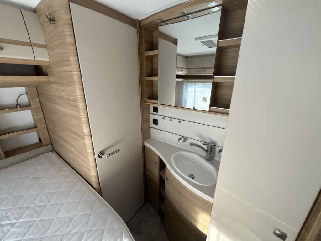 Výbava: mover Truma, klimatizace Truma, koberec nástavby, sáčková markýza, inteligentní plynový regulátor DuoControl, sprcha, podložky pod stabilizační vzpěry Bigfoot, městská přípojka na vodu, BATTERY PACK