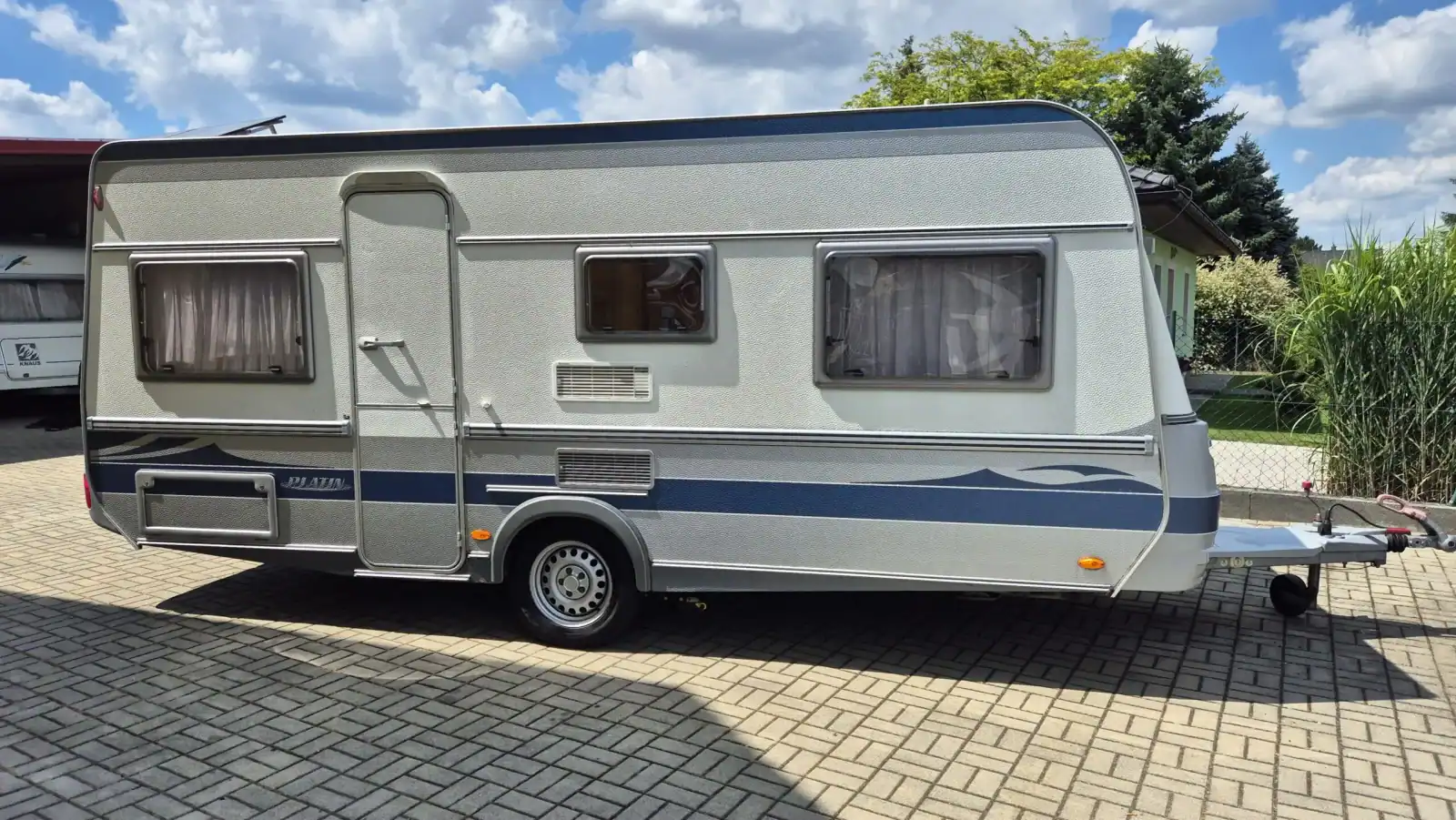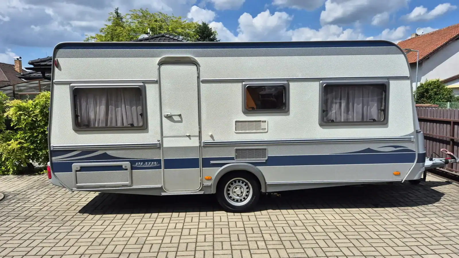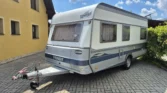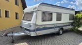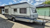 Uprostřed vlevo je koupelna s kazetovým wc a plastovou podlahou s výpustí. Kuchyňský sektor s lednicí 12V/230V/plyn, plynovým sporákem, mikrovlnnou troubou a dřezem je uprostřed vpravo. Karavan má termorolety, síťky proti hmyzu ve všech oknech, velké panoramatické stropní okno, rozvod 12/230V, plynové topení TRUMA s rozfukem, el. bojler, nosič kol na zadním čele, rychlost 100 km/h, rezervní kolo, stabilizátor, el. pojezd( mover) na dálkové ovládání, akumulátor, servisní dvířka na boku, celouzavřený předstan. Délka bez oje 530 cm, šířka 230 cm, hmotnost 1080 /1360 kg, dovozová TK, funkčnost všech spotřebičů je samozřejmostí a při prodeji bude předvedena. Vystavuji převozní značky a řeším povinné ručení…