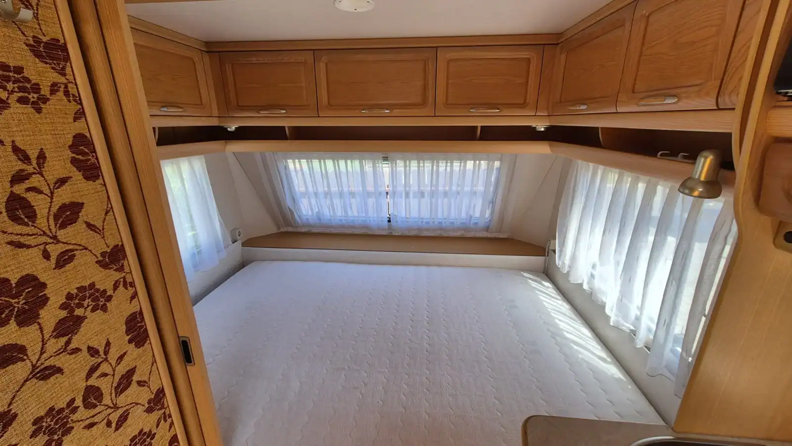 V přední části je pevné dvoulůžko, tuto část lze oddělit pevnou přepážkou.