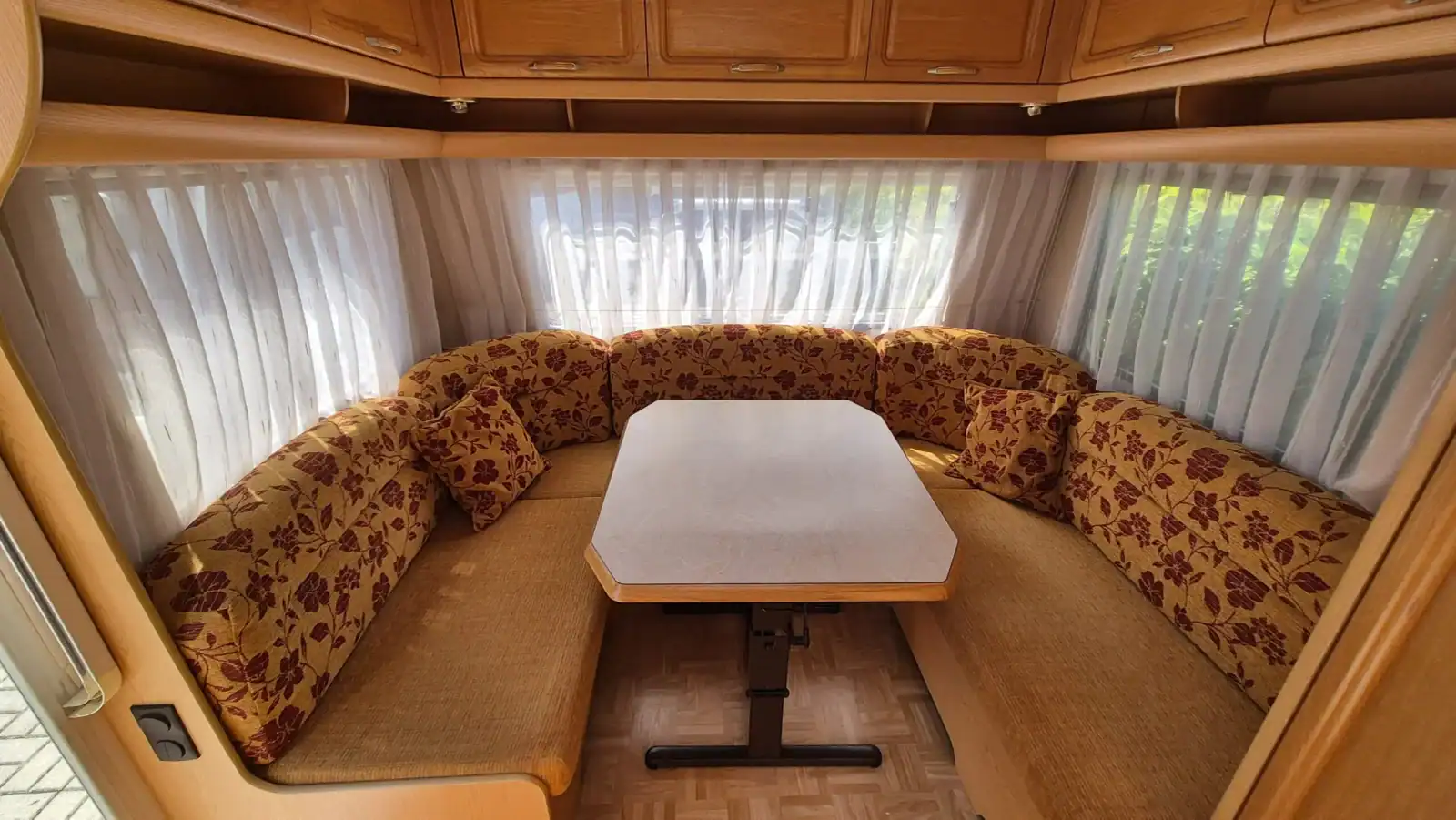 V zadní části je sezení do podkovy, které se dá rozložit pro další dvě osoby na spaní.