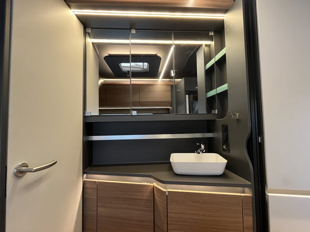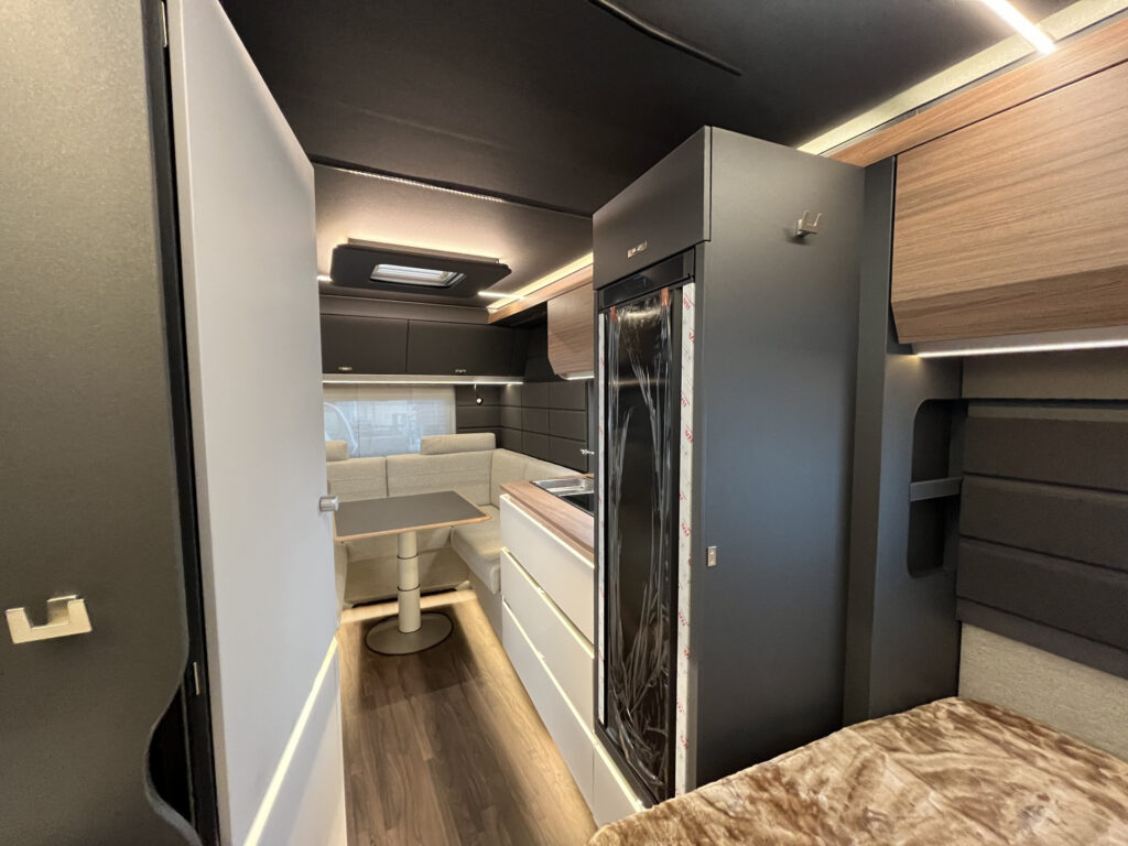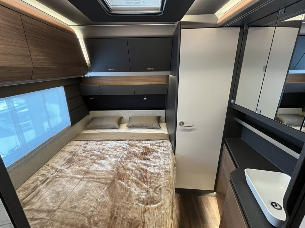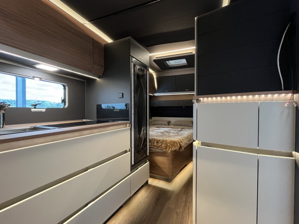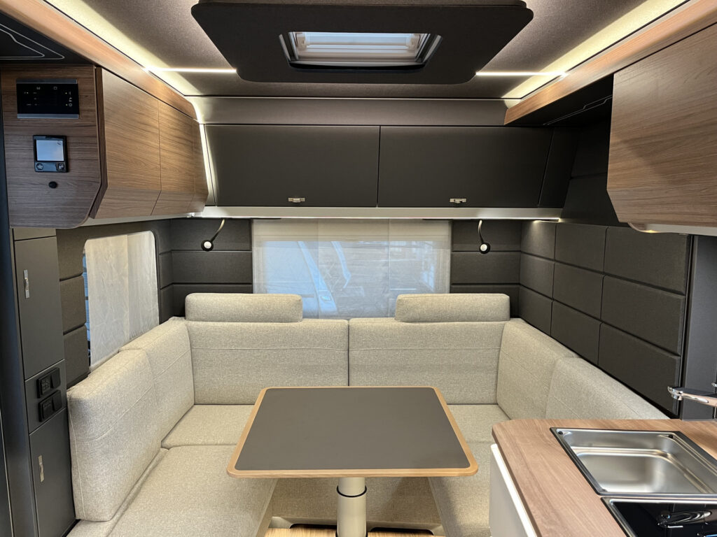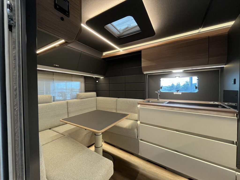 Elektro / multimedia / bezpečnost: 13-ti kolíková elektro zásuvka pro tažné vozidlo, vnitřní LED osvětlení, smart nabíječka 25A, ovládací panel, 230V zásuvky, ambientní osvětlení interiéru, příprava TV