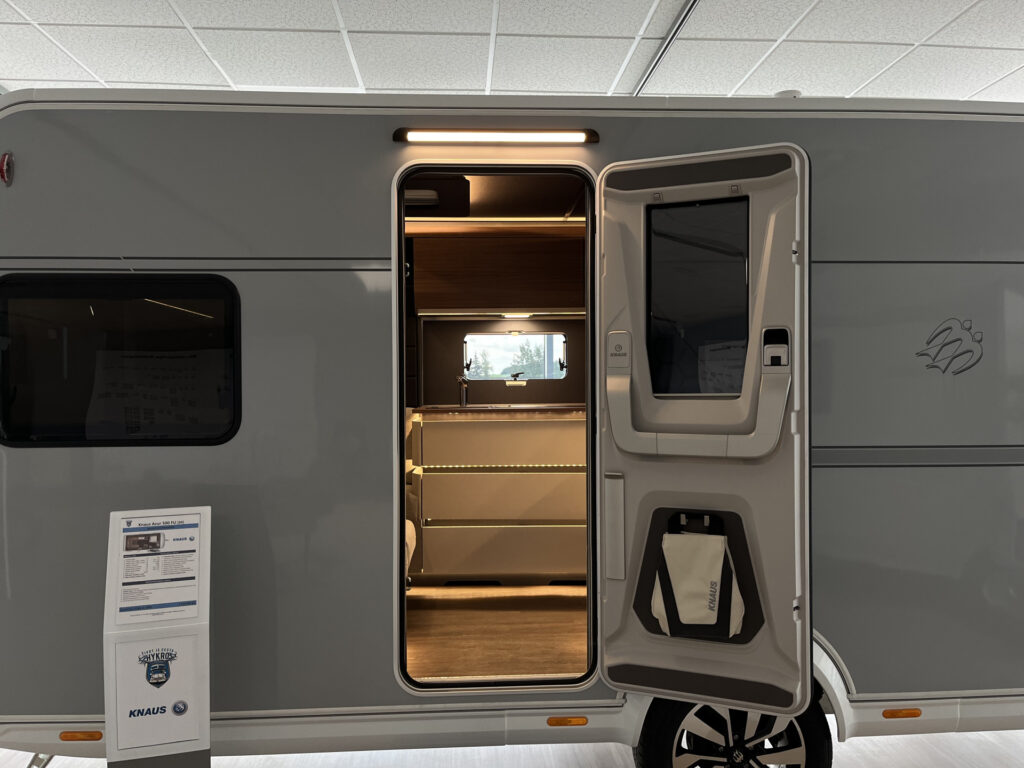 Příplatková výbava v ceně karavanu: boční servisní dvířka levá, navýšení celkové hmotnosti na 2 000 kg, rezervní kolo (lité, 17″, lakované v designu Knaus), stabilizace podvozku, Bluetooth Sound systém, Truma DuoControl CS (vč. plynového filtru)