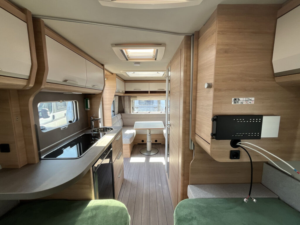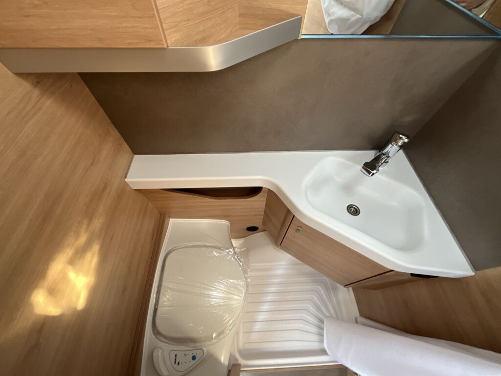 Příplatková výbava v ceně karavanu: servisní klapka 100 x 40.5 cm levá, lité rezervní kolo (17"), držák rezervního kola na podvozku, rozšíření pracovní desky v kuchyňce, ukazatel stavu vody v nádrži, vybavení sprchy