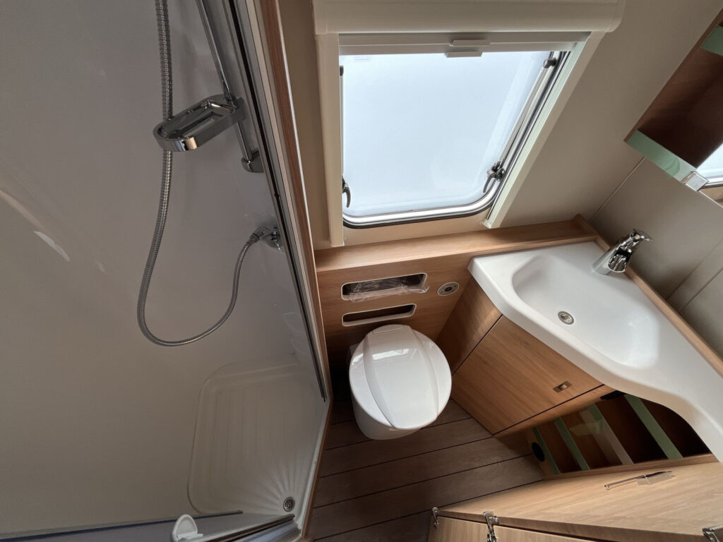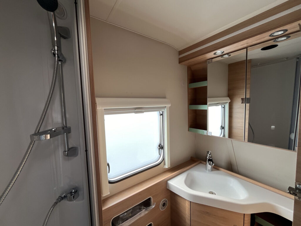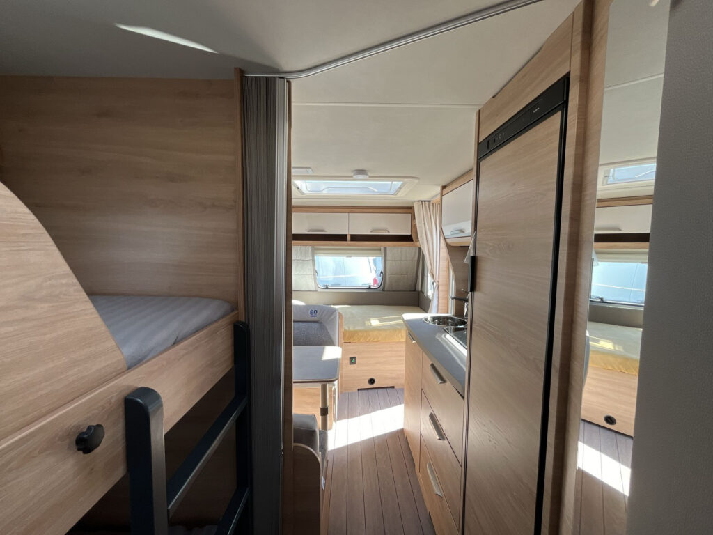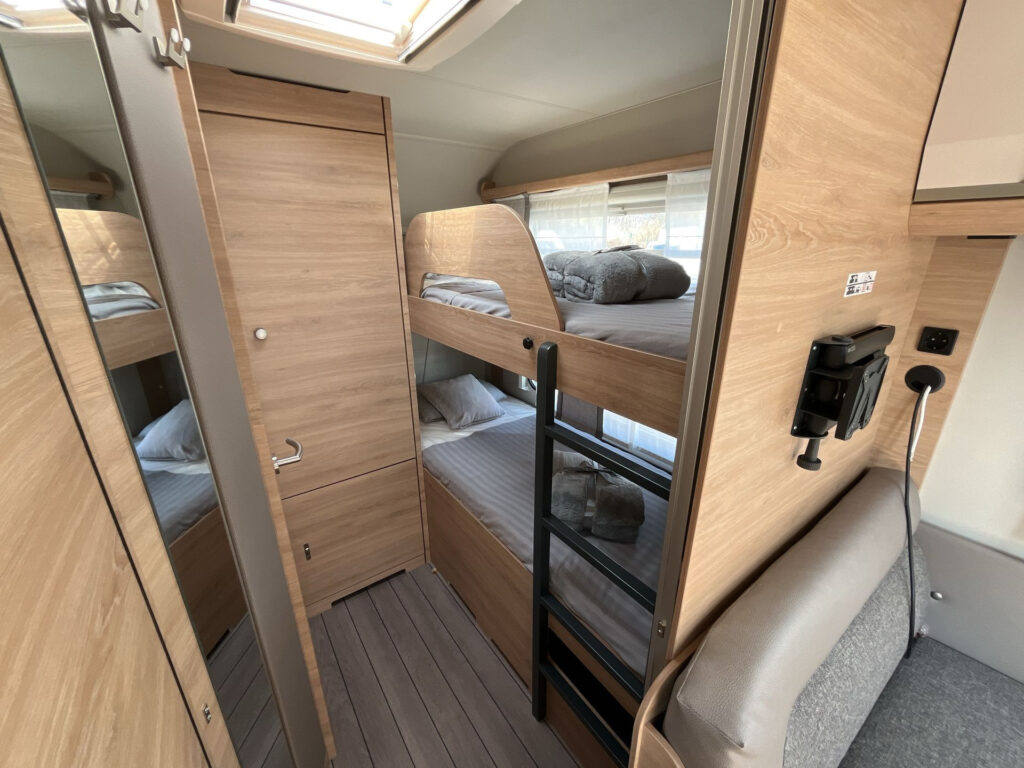 Další příplatková výbava v ceně: lité rezervní kolo vč. zvedáku a držáku na podvozku, digitální ovládací panel k topení Truma CP Plus, rozšíření pracovní desky v kuchyňce, rozšíření sedací soupravy (vč. možnosti rozložení na dvojlůžko)