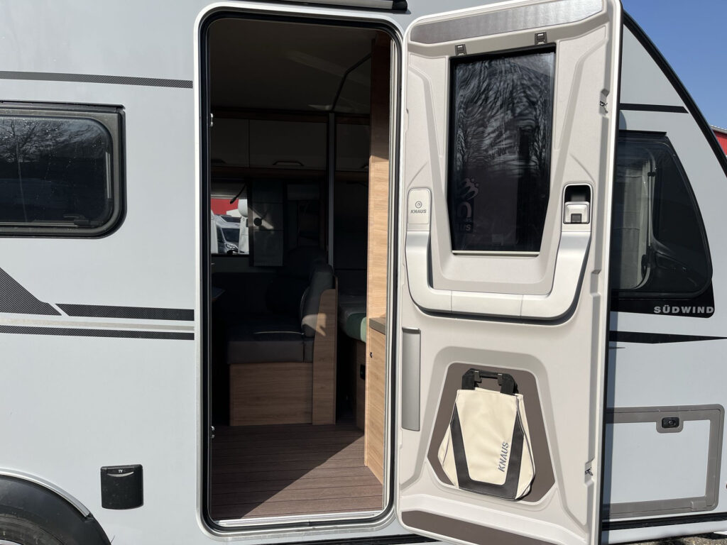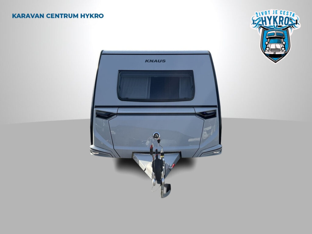 NÁSTAVBA: vstupní dveře Knaus Premium, moskytiéra vstupních dveří, systém jednoho klíče, skříňka na plynové láhve (2 x 11 kg), servisní klapka 100 x 30.5 cm levá, servisní klapka 100 x 40.5 cm pravá, Knaus ServiceBox, dvojitá tónovaná otevírací okna se záclonkami, moskytiérou a zatemňovací roletkou; střešní okno 96 x 65 cm s moskytiérou a zatemňovací roletkou, otevírací okno 52 x 50 cm s kombinovanou roletkou, GFK střecha se zvýšenou odolností proti kroupám, boční stěny z hladkého plechu, exteriér v barvě Campovolo Grey, LED osvětlení exteriéru, LED třetí brzdové světlo, zadní světla Knaus CATEYE evolution