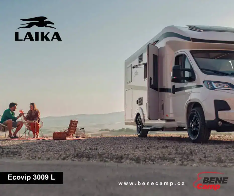 Italský výrobce Laika je známý kvalitním zpracováním, originálním designem a důrazem na komfort. Vůz nabízí dvoulůžko v zadní části, moderní kuchyň, oddělenou koupelnu a prostorný obývací prostor s otočnými sedadly.