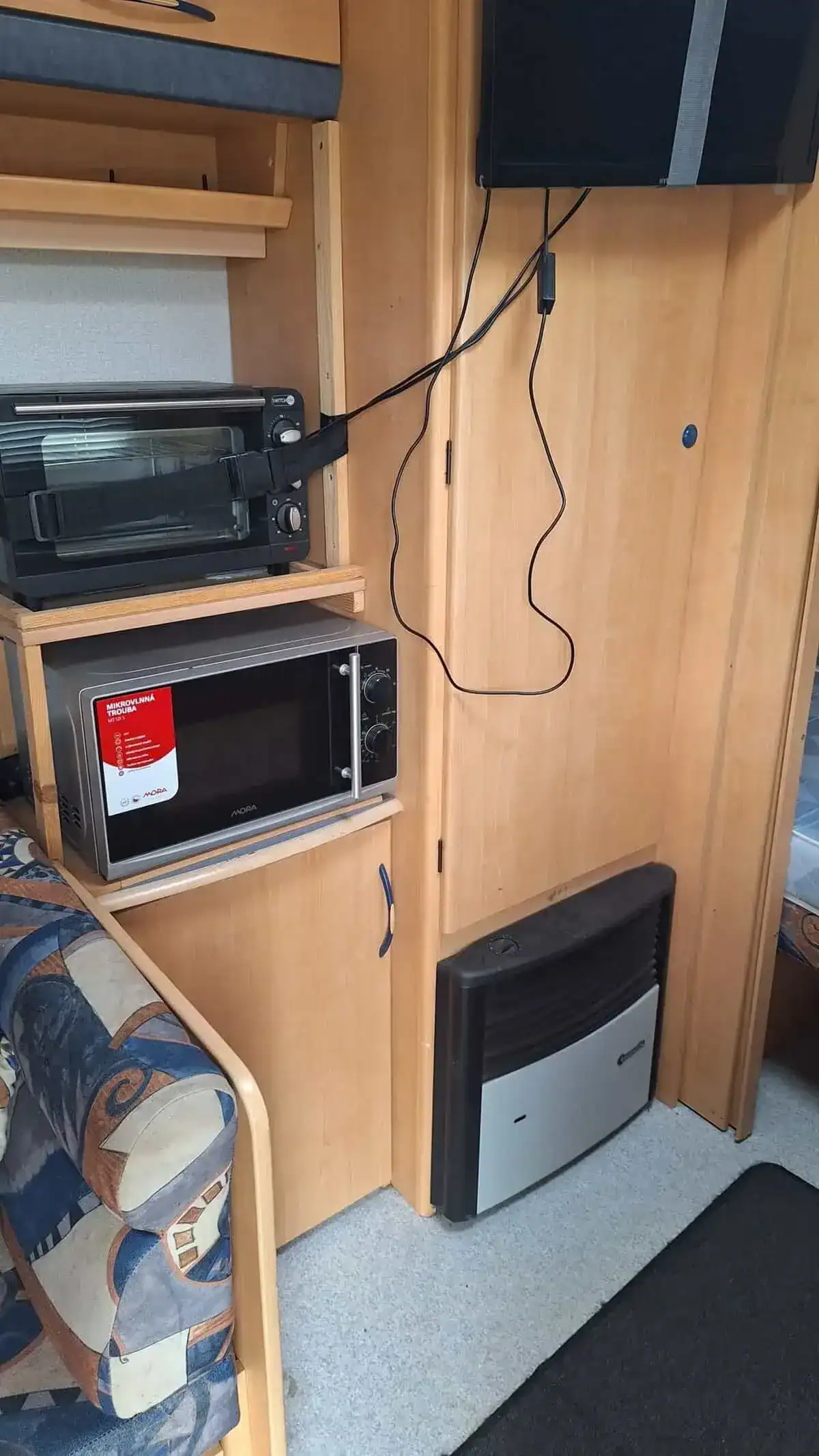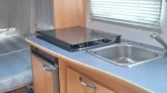 V přední části přívěsu je umístěno sezení rozložené na dvoulůžko 150 x 195 cm s přidanou matrací. Tato část je plně uzavíratelná pevnými posuvnými dveřmi. Ve střední části karavanu se nachází kuchyňská linka, která je vybavena elektrickou lednicí,…
