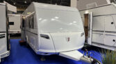 PODVOZEK: podvozek Knott s nápravou uloženou na vlečných ramenech vč. hydraulických tlumičů pérování, stabilizátor závěsu, KNOTT.ANS samonastavitelná brzda, stabilizační vzpěry vpředu i vzadu, madla usnadňující manévrování s přívěsem, ergonomická zadní manévrovací konstrukce, 15″ litá kola (pouze pro jednonápravové karavany)
