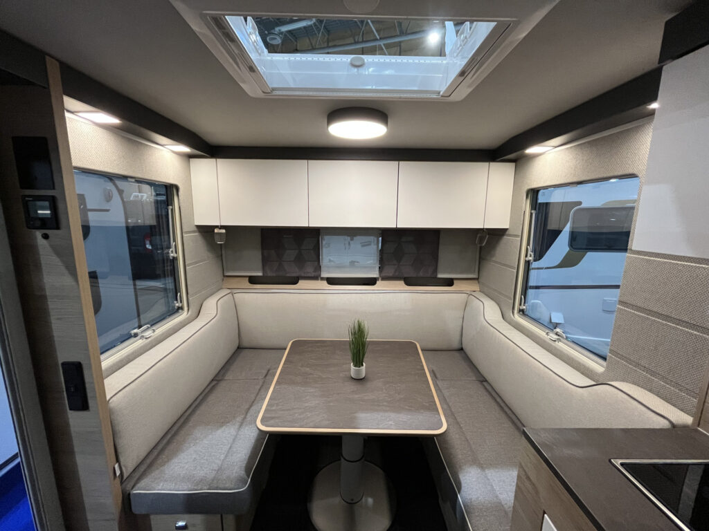 Příplatková výbava v ceně karavanu: servisní klapka 100x40.5 cm levá přední, servisní klapka 70x30.5 cm zadní levá, servisní klapka 100x30.5 cm zadní pravá, panoramatické střešní okno 130x45 cm (přední), držák rezervního kola na podvozku, 17" litá kola, 230V přídavná zásuvka v kuchyňce, venkovní osvětlení s pohybovým senzorem, premiový zvukový Bluetooth systém, Truma DuoControl CS (vč. plynového filtru), topení Truma Combi E, elektrické podlahové topení, plynová trouba…