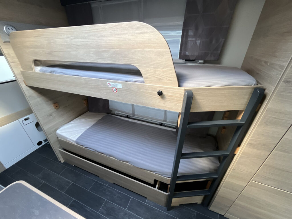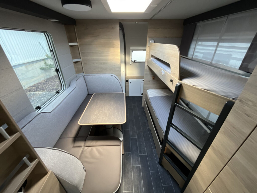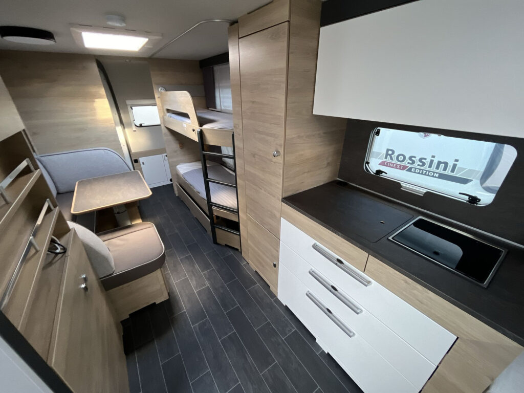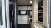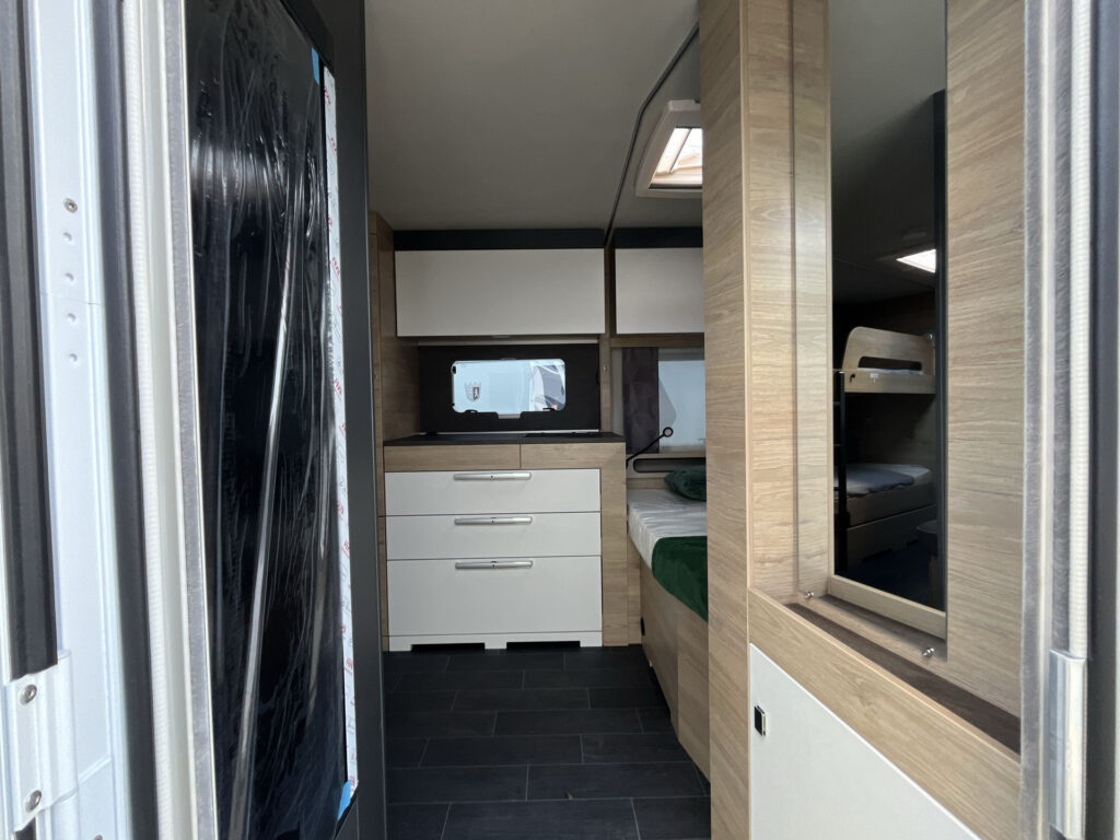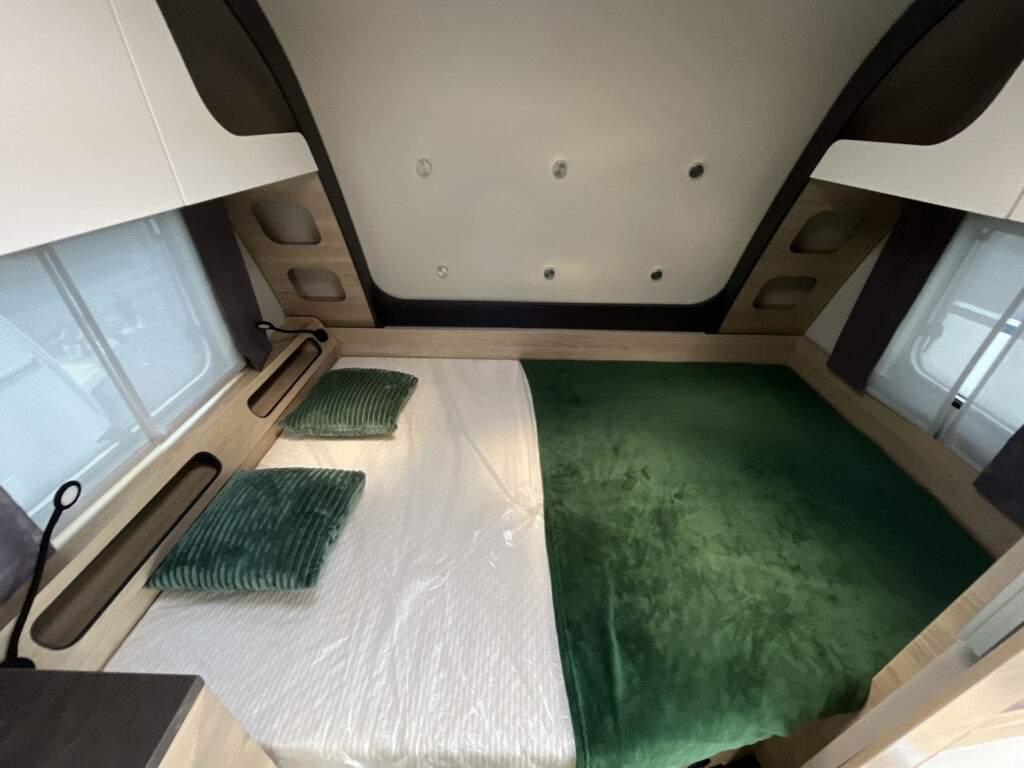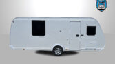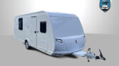 Luxusní rodinný přívěs s příčným dvojlůžkem, dvojpalandou, rozkládacím sezením a prostornou koupelnou v zadní části karavanu po celé šířce. Karavan je skladem a ihned k odběru na naší pobočce Praha 5 - Řeporyje.