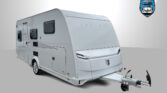 PODVOZEK: podvozek AL-KO, náprava uložená na vlečných ramenech vč. tlumičů pérování, nájezdová brzda s couvací automatikou, ruční brzda se servoposilovačem, stabilizátor AKS, stabilizační vzpěry AL-KO Premium vpředu a vzadu, 14″ ocelové disky kol, brzdy AL-KO AAA Premium