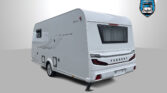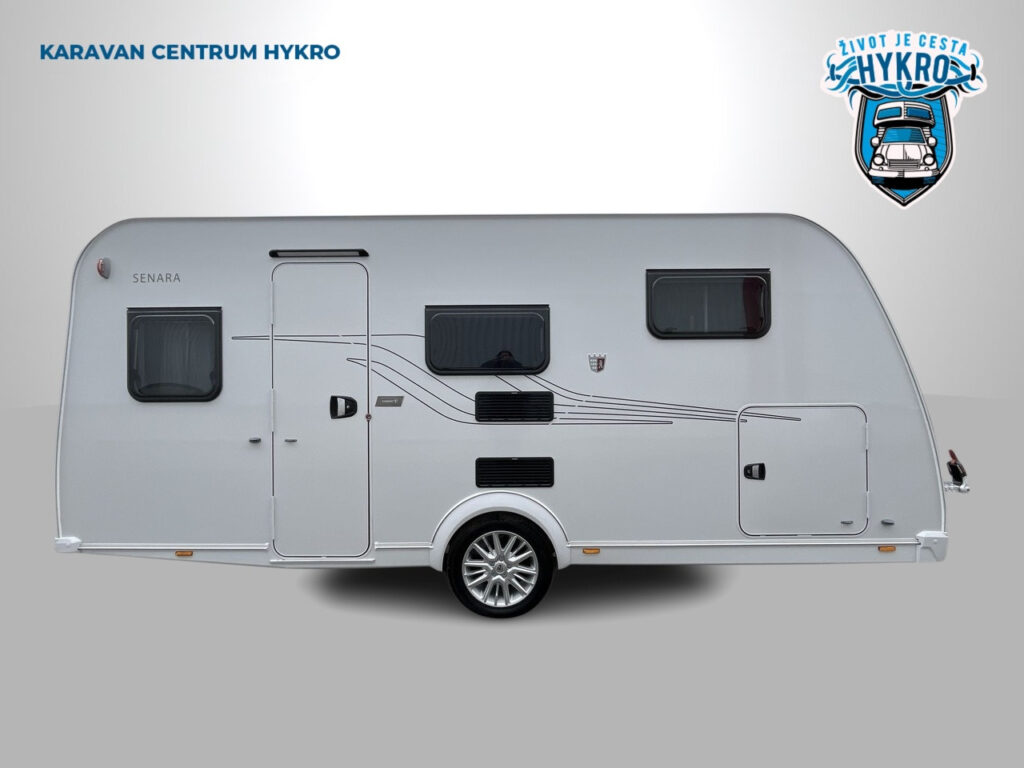 Příplatková výbava v ceně karavanu: moskytiéra vstupních dveří, garážové dveře levé 80 x 80 cm, boční stěny z hladkého plechu, navýšení celkové hmotnosti na 1.500 kg, 17″ lité rezervní kolo, extra USB zásuvka, elektrické podlahové topení, TRUMA E-kit pro Truma Vario Heat, ukazatel stavu vody v nádrži, vybavení sprchy vč. sprchové vaničky, výsuvný rošt mezi podélnými lůžky