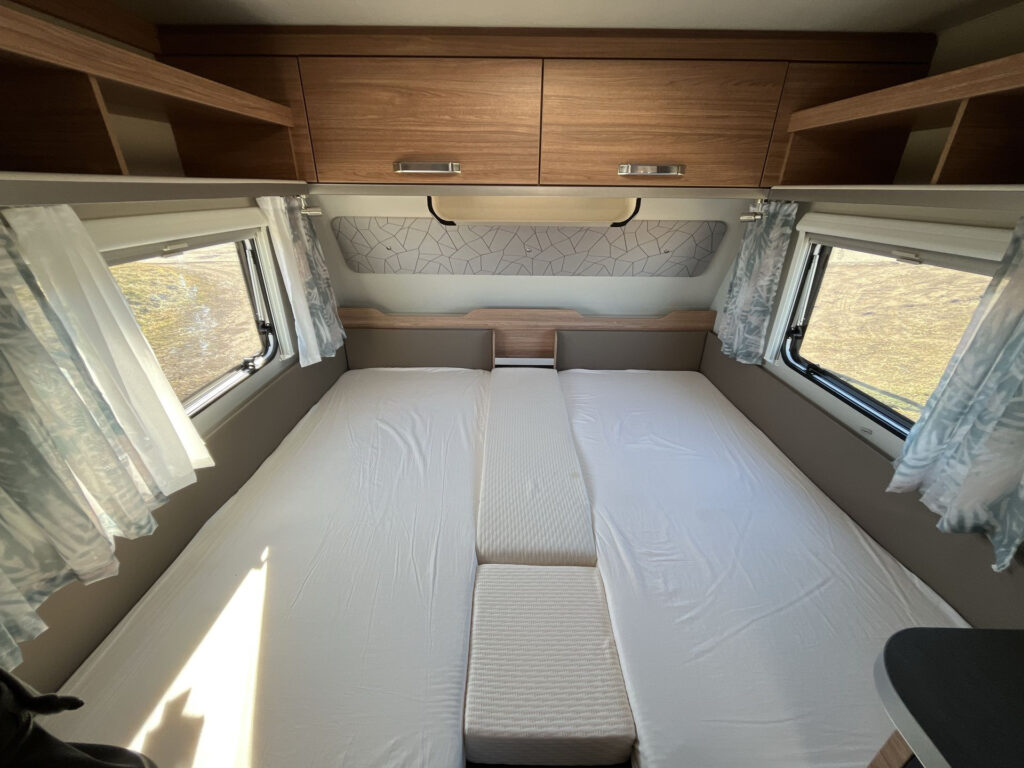 Další nadstandardní výbava: navýšení celkové hmotnosti na 1 500 kg, výsuvný rošt mezi samostatnými lůžky (rozšíření lůžka vč. matrací)