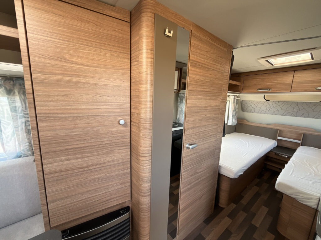 SMART PAKET – AKS stabilizátor závěsu, kombiroletky v oknech, rozvod teplého vzduchu s větrákem 12 V, vestavěná nádrž na čistou vodu 45 l, zesílené stabilizační vzpěry AL-KO, vodní filtrační systém „BWT“, sada Medikit (sprej na rány, dezinfekce a ostatní nutné medikamenty), silwyREADY (magnetický systém uchycení předmětů)