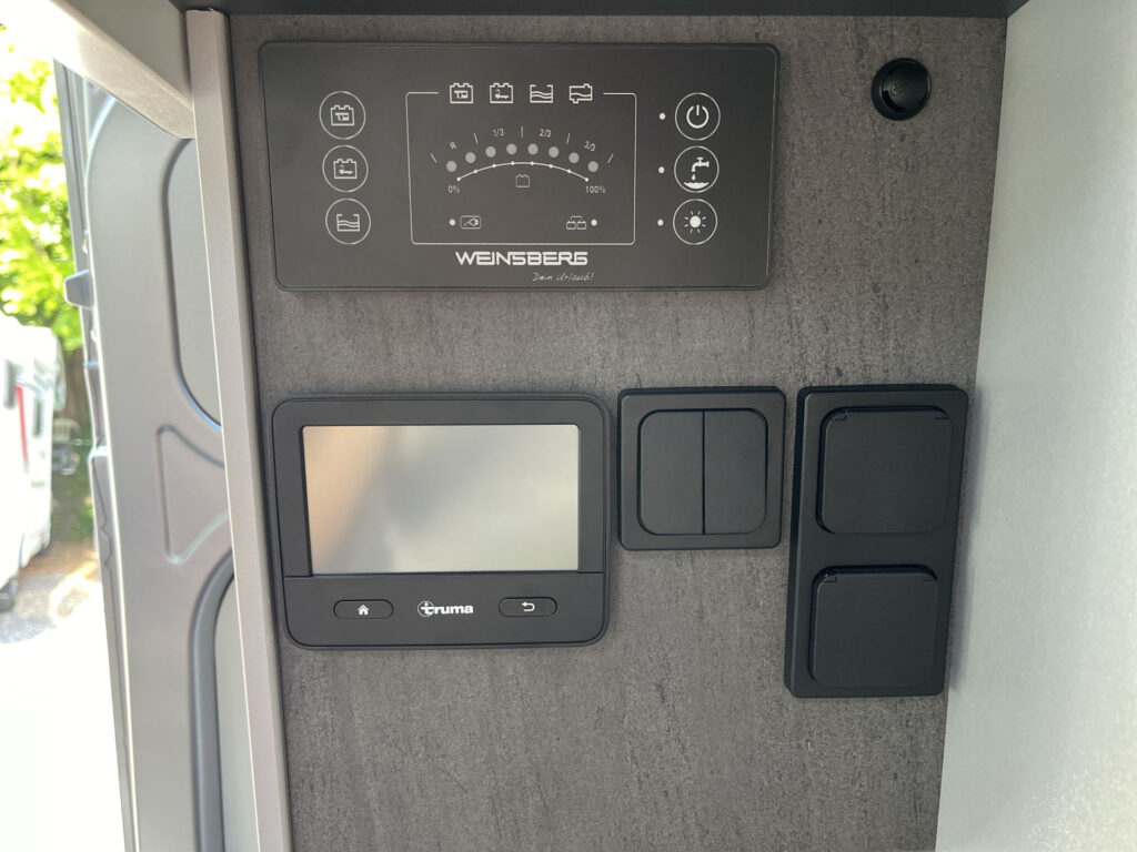 WEINSBERG SMART PAKET: elektrický vstupní schůdek (70 cm), příprava pro rádio vč. 2 reproduktorů v obytné části, Truma iNetX ovládací panel k topení, vodní filtr „bluuwater“, zatemňovací žaluzie v kabině řidiče, kombinovaná roletka u zadních dveří dodávky, voucher MediKit, zásobník na mýdlo