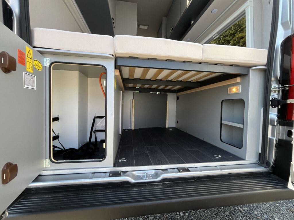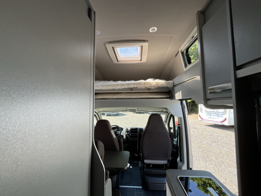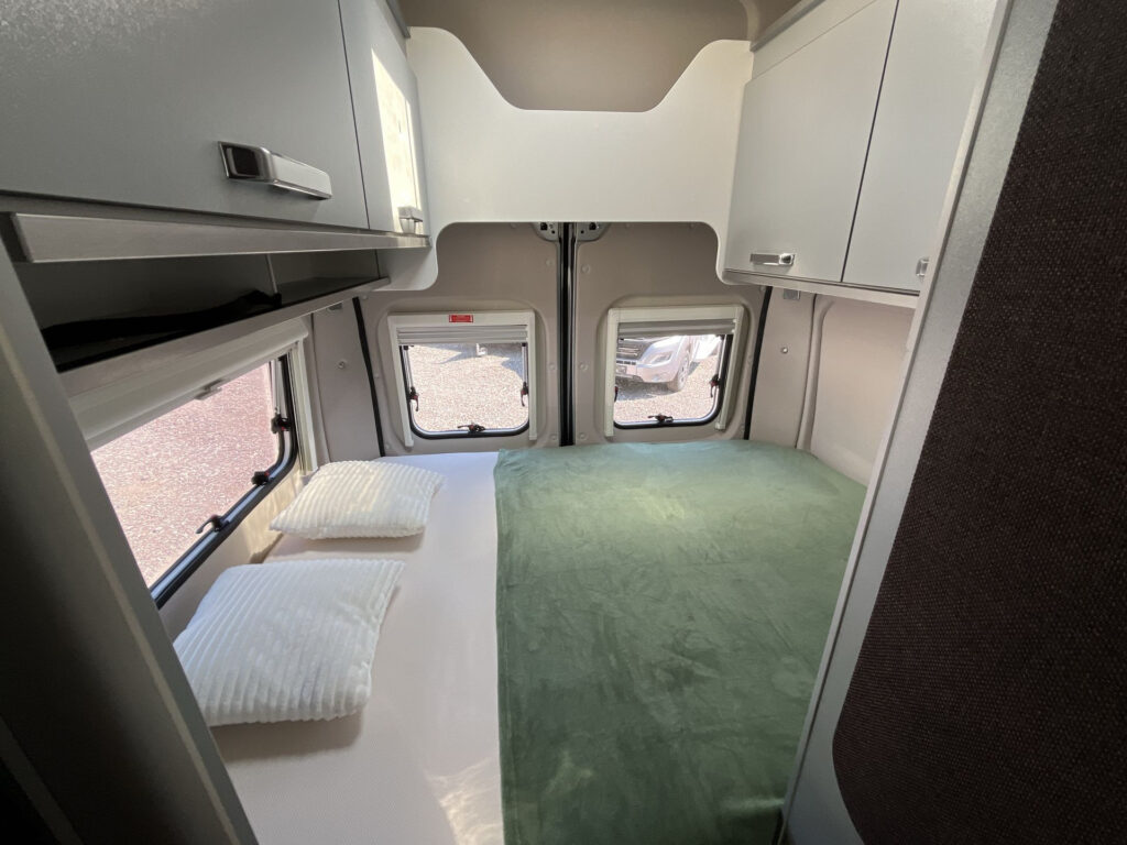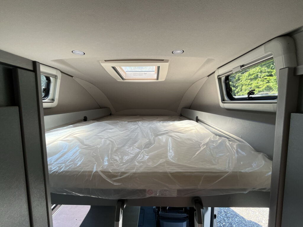 Obytná dodávka s předním stahovacím dvojlůžkem pro 4 osoby na jízdu i na spaní skladem.